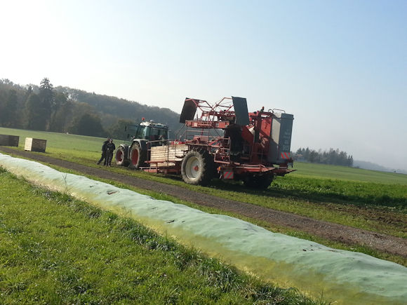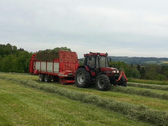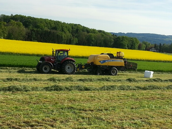 Die Dürrfutterproduktion wird mit betriebseigenem Personal und Maschinen erledigt. Das pressen und wickeln der Siloballen, wird an Lohnunternehmen vergeben.